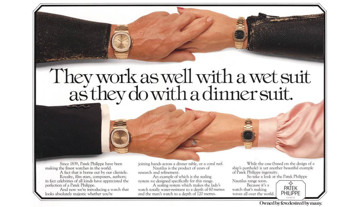 Quelques années plus tôt, il avait dessiné pour Audemars Piguet la Royal Oak, une montre partageant certaines caractéristiques avec la Nautilus. Mais cette dernière illustre parfaitement l’évolution du style Genta. Comme pour les grands artistes dont le travail mûrit tout au long de la carrière, en regardant les croquis préliminaires et les maquettes, on peut suivre la pensée du designer horloger dans sa quête d’«élégance fonctionnelle» ou de «fonctionnalité élégante». Pour Gérald Genta, la Nautilus marquait une progression par rapport à la Royal Oak, comme l’explique Évelyne. «Il voulait qu’elle soit plus «anatomique». La Royal Oak lui semblait uniquement sportive – même si de nos jours, certains la portent avec un habit de soirée, sourit-elle. Il voyait aussi la Nautilus comme une montre sportive, mais pouvant être portée toute la journée.» Les premières publicités soulignaient cet aspect, en mettant en avant l’élégance polyvalente de la Nautilus tout autant que sa robustesse et son étanchéité. «Elle se marie aussi bien avec une combinaison de plongée qu’avec un smoking», disait l’une des annonces.