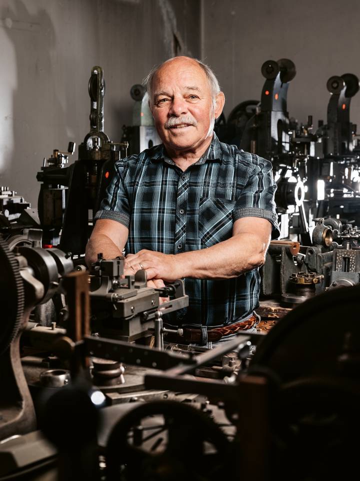 - Georges Brodbeck aux commandes d’une de ses guillocheuses