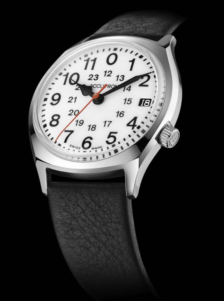 - La réédition de l’Accutron Legacy R.R.-0 (34mm) avec son style «chemin de fer» très distinctif