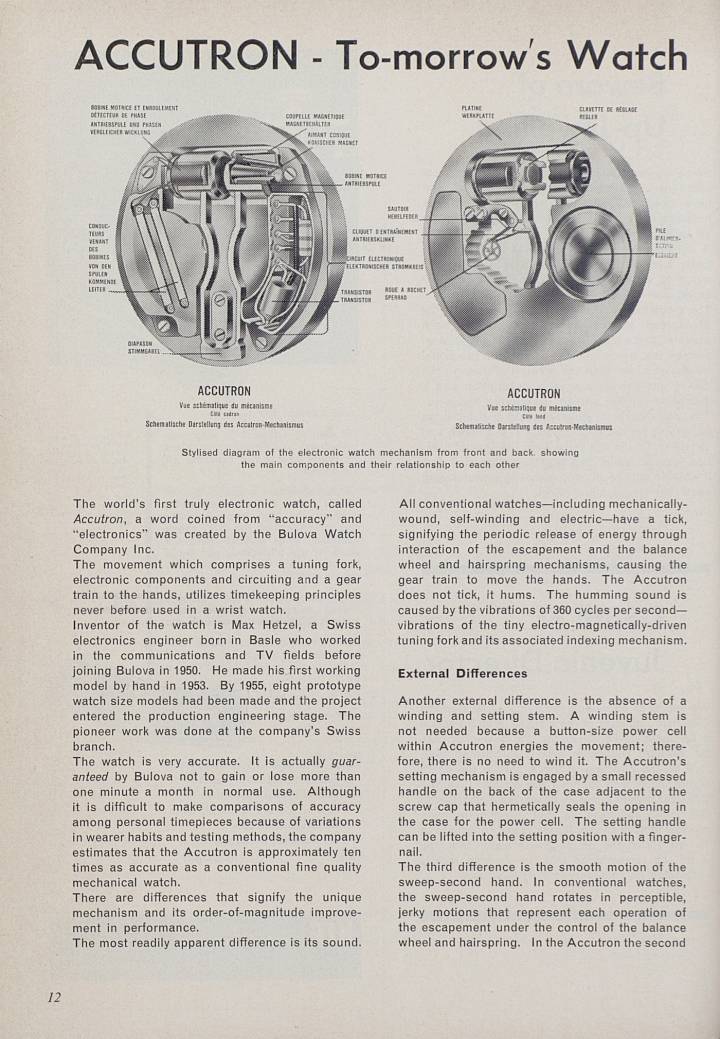 - Un article paru en 1960 dans Europa Star présente l’Accutron, «première montre réellement entièrement électronique», inventée par un ingénieur suisse, Max Hetzel.