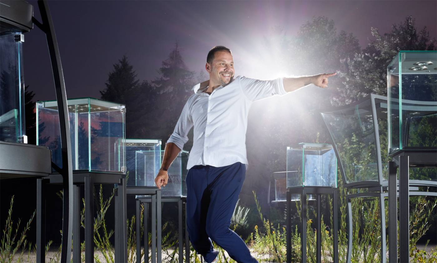 En 2003, il a créé sa première vitrine pour François-Paul Journe: «Elle s’appelle Archange et reste encore ultra-actuelle aujourd’hui, intemporelle et puissante 16 ans après sa création.» Mais c’est encore une vitrine traditionnelle, une «mise sous cloche».