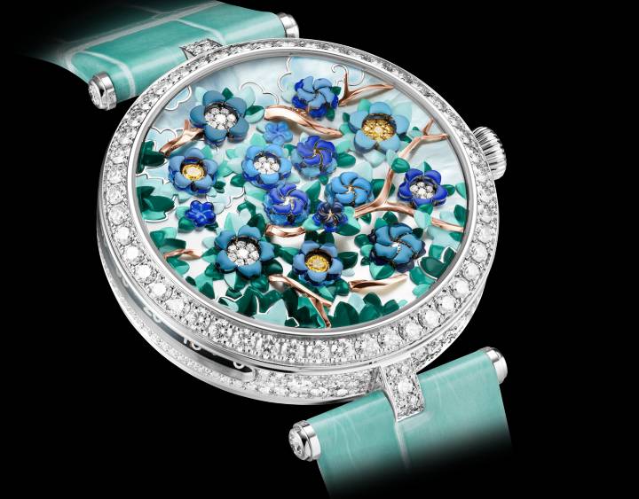 - Le cadran tridimensionnel de la Lady Arpels Heures Florales offre une restitution poétique du temps qui passe, grâce à l’ouverture et la fermeture de 12 corolles. Donner l’heure devient un spectacle, car les fleurs s’épanouissent et se referment, renouvelant le décor du cadran toutes les 60 minutes.