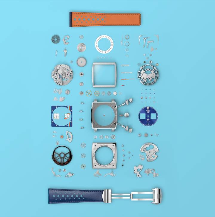 - Les composants de la nouvelle Monaco Gulf aux couleurs du partenaire historique de la marque - un modèle désormais équipé du mouvement maison Heuer 02.