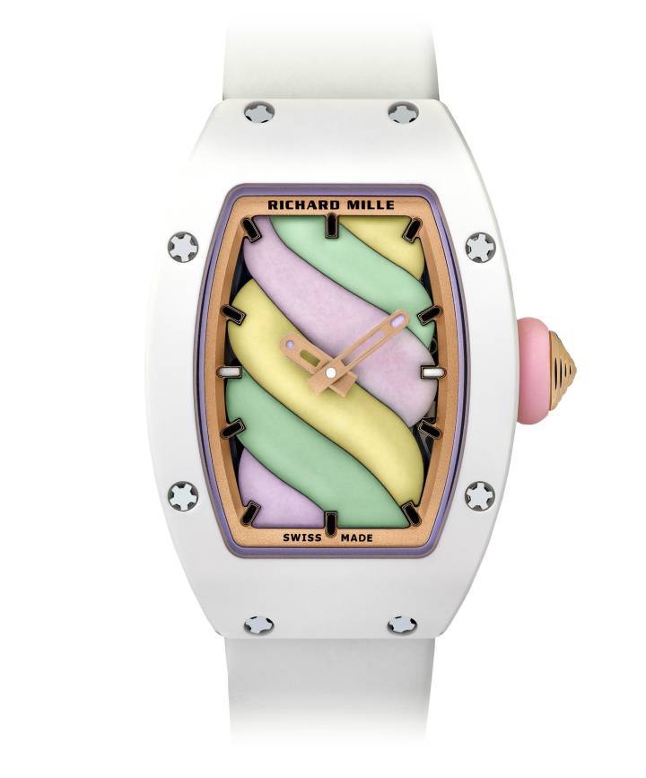 iable d’homme que ce Richard Mille. Alors que pour la plupart des horlogers les métiers d’art perpétuent une iconographie surannée très XVIIIème siècle, composée de fleurs, d’animaux sauvages et de paysages bucoliques, le voici qui ouvre une rutilante bonbonnière pop et psychédélique.