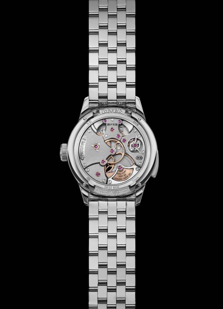 «Elle a un côté passé-présent: nos cadrans sont bombés, comme un clin d’œil à l’horlogerie d’autrefois, mais nos index sont modernes et galbés. Nos aiguilles sont des dauphines aux sommets rabotés, les angles sont polis et le dessus est satiné», relève Pierre Biver. Quel que soit l’endroit où se pose le regard, il trouve un point d’accroche. Partout ces jeux d’ombre et de lumière racontent une histoire contrastée. Cette brillance qui se voile évoque elle aussi le passage du temps sur l’objet et renvoie à toute la philosophie qui sous-tend la marque Biver: bâtir un pont temporel qui relie passé, présent et futur.