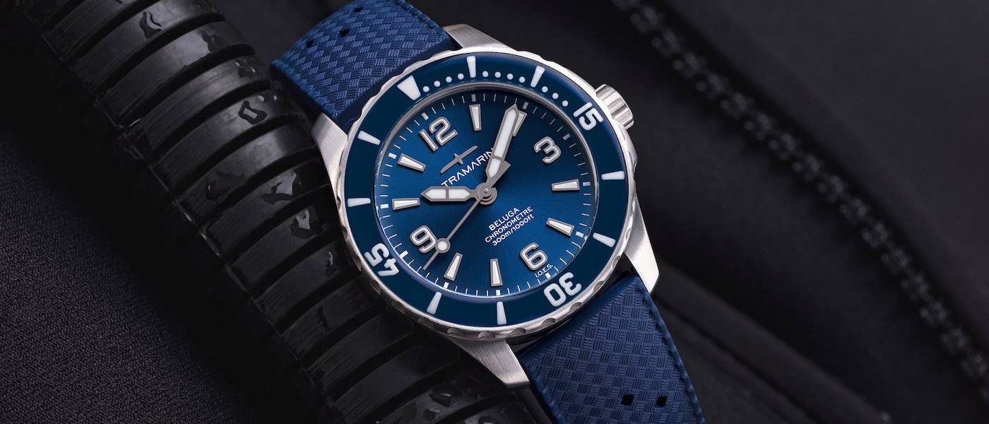 - Disponible avec un cadran bleu, glacier ou noir, le Beluga Ultramarine est étanche à 300m.